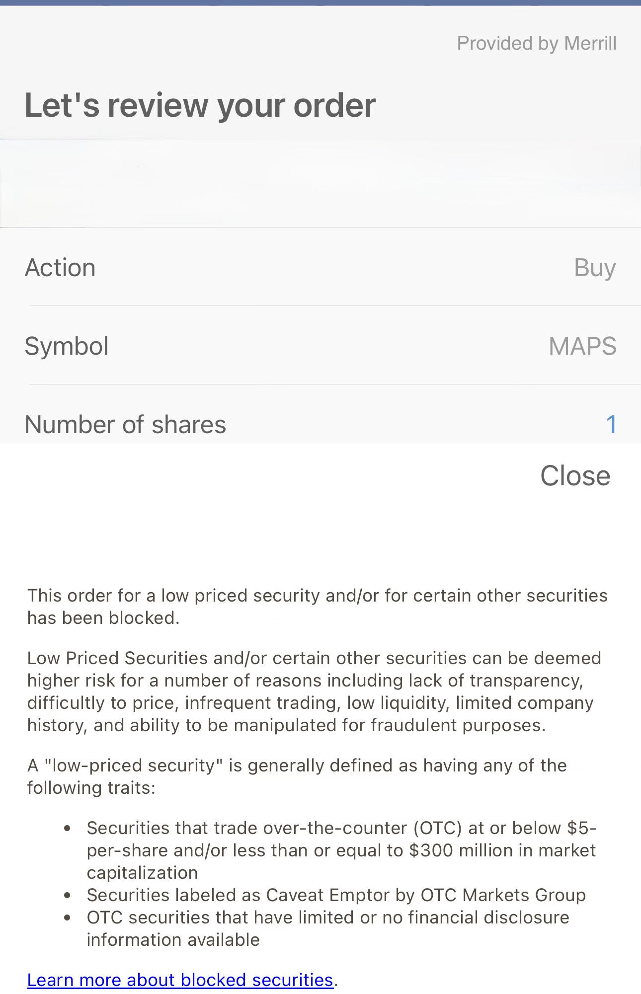 Retail access frictions may also be affecting the quote at the margin. On March 13, 2026, the day after the 10-K was filed, a Merrill retail account attempting to purchase MAPS received a low-priced-security block screen. I do not treat that single instance as dispositive. I do treat it as contemporaneous evidence that, at least at some firms or account configurations, the low-priced-security label may itself be narrowing the practical buyer universe and contributing to an affected tape.